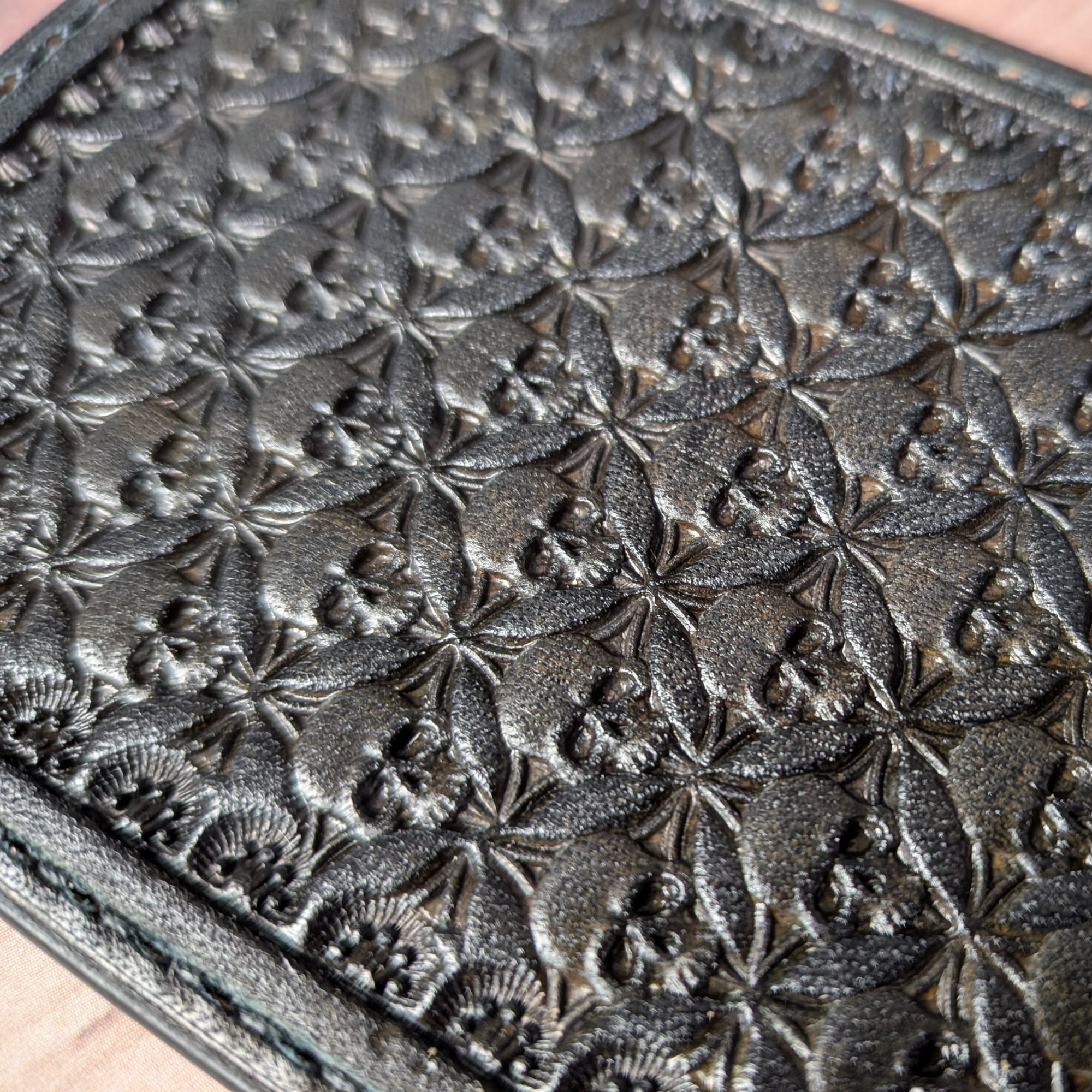 模様は型押しではなく、すべて手打ちによる彫刻。