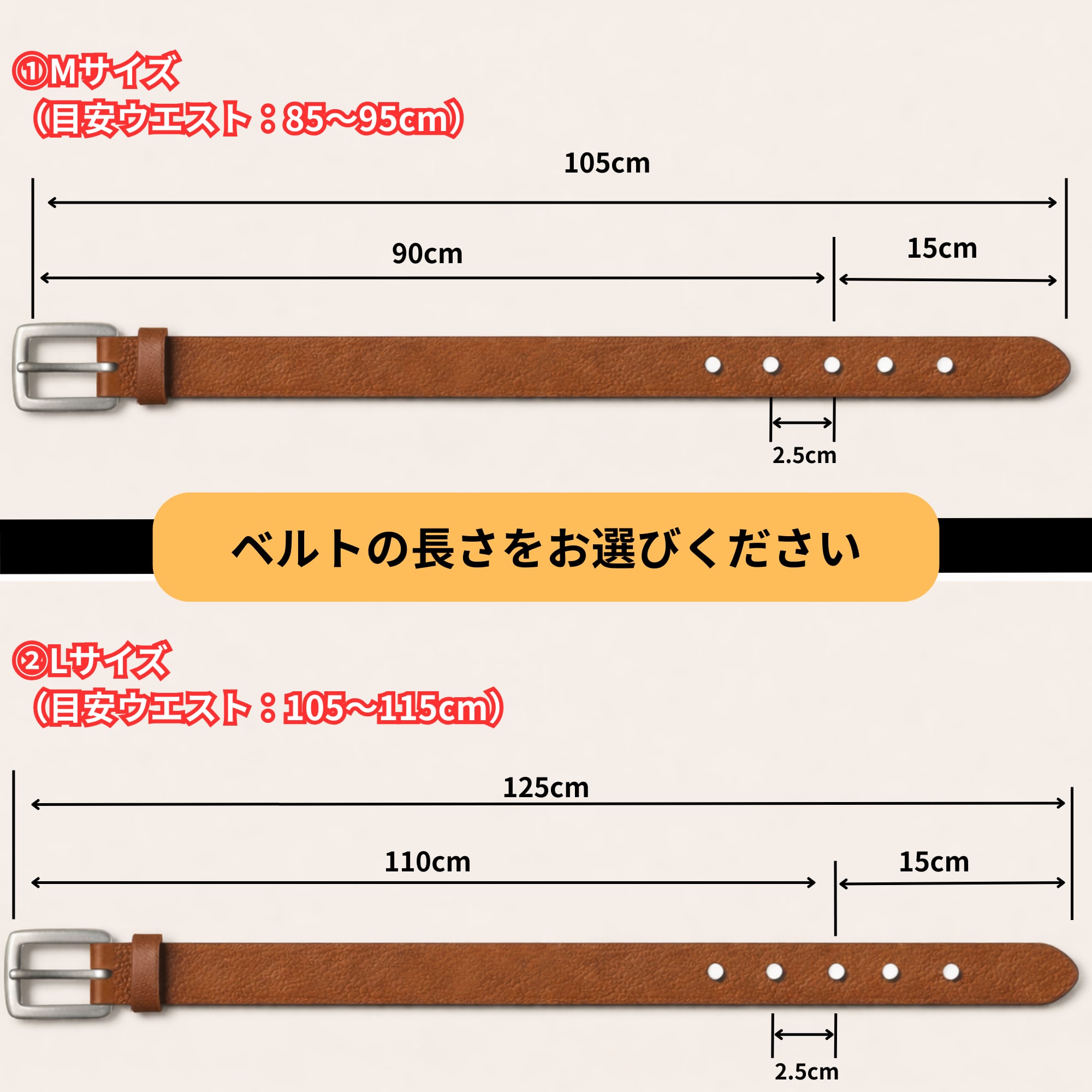 ① Mサイズ:105cm