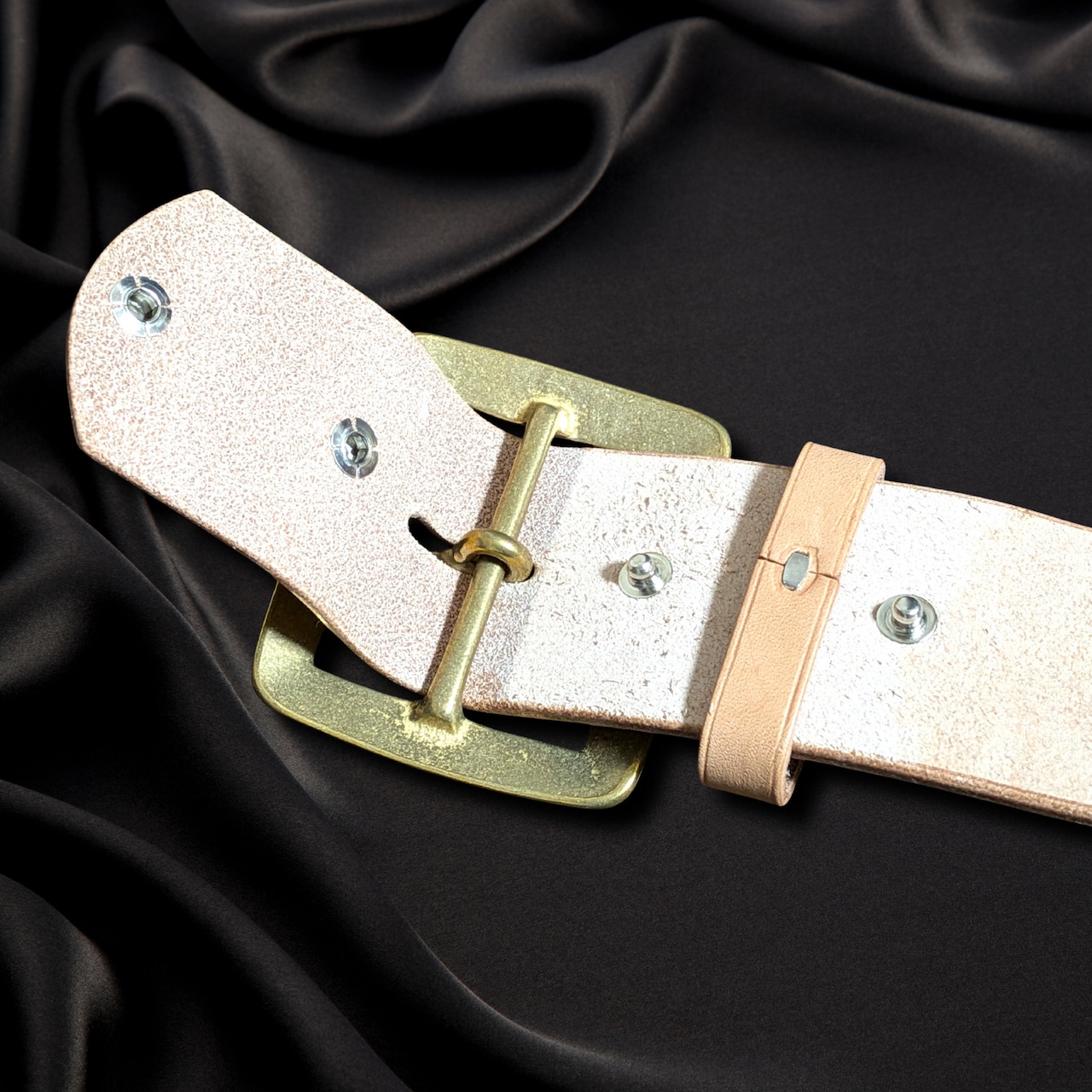 無垢真鍮バックルを使用。革とともに経年変化を楽しめます。