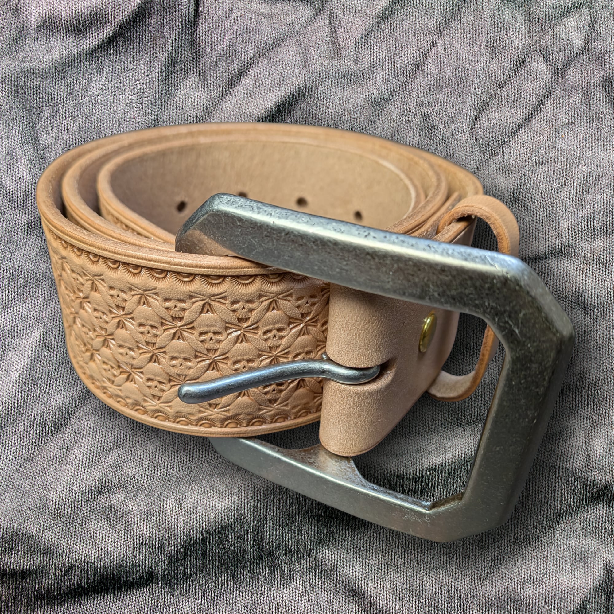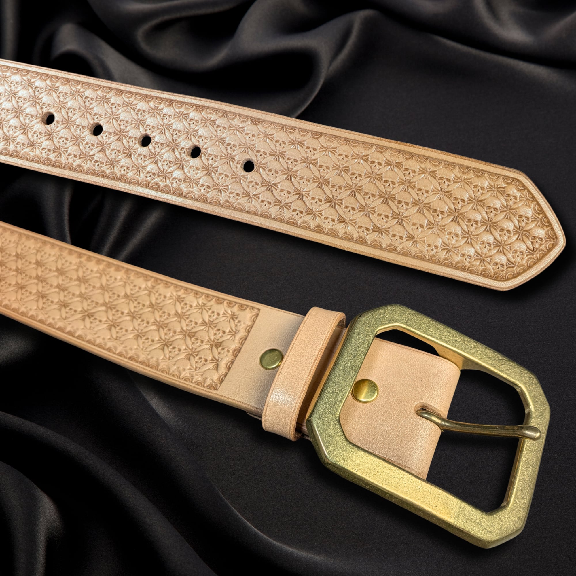 全面に刻印を施した、存在感のあるレザーベルト。